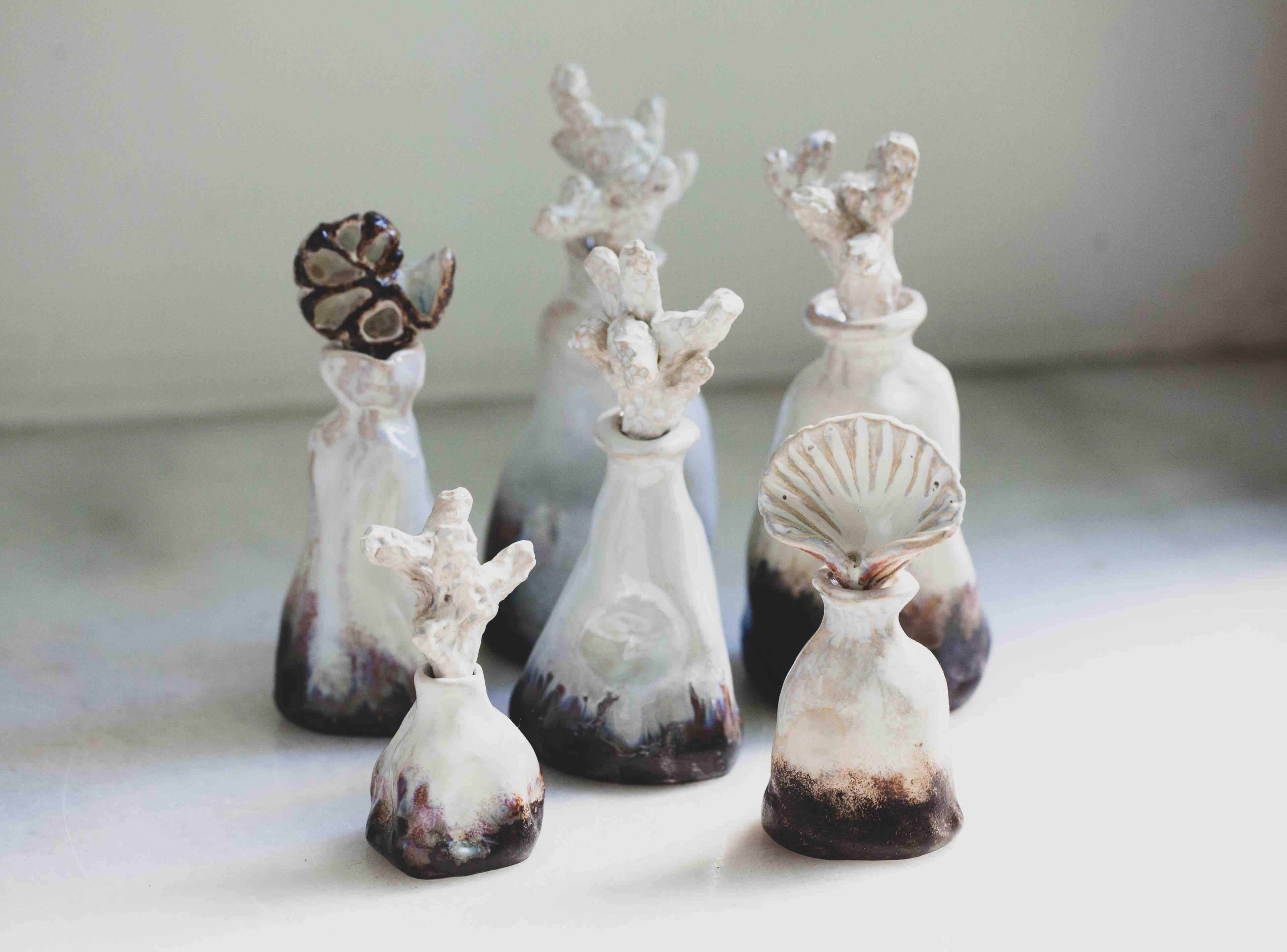 With a background in documentary filmmaking, Julia found in ceramics a way to give form to worlds and creatures beyond words. She imbues her works with human qualities to reflect on complex themes, balancing depth with humor and playfulness. Alongside installations and interior ceramics, Julia produces limited series of tableware and functional objects.