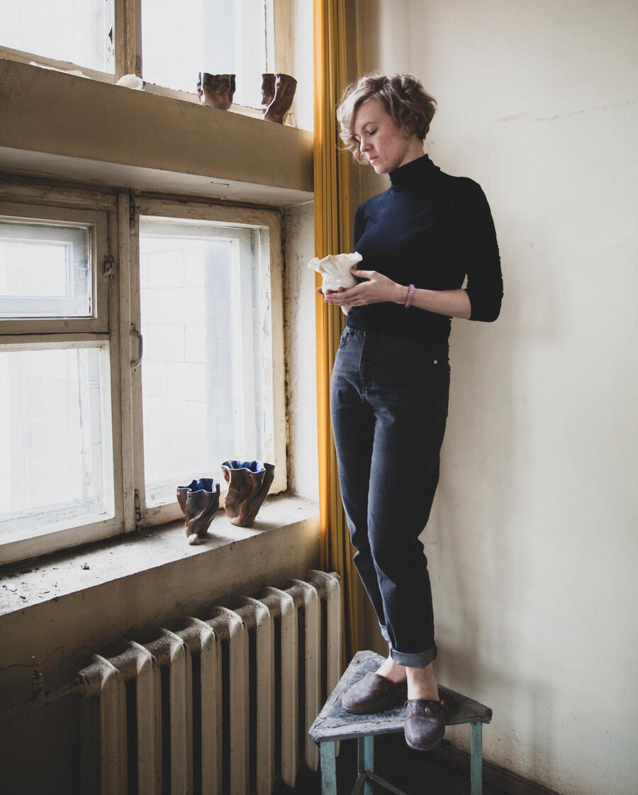 With a background in documentary filmmaking, Julia found in ceramics a way to give form to worlds and creatures beyond words. She imbues her works with human qualities to reflect on complex themes, balancing depth with humor and playfulness. Alongside installations and interior ceramics, Julia produces limited series of tableware and functional objects.